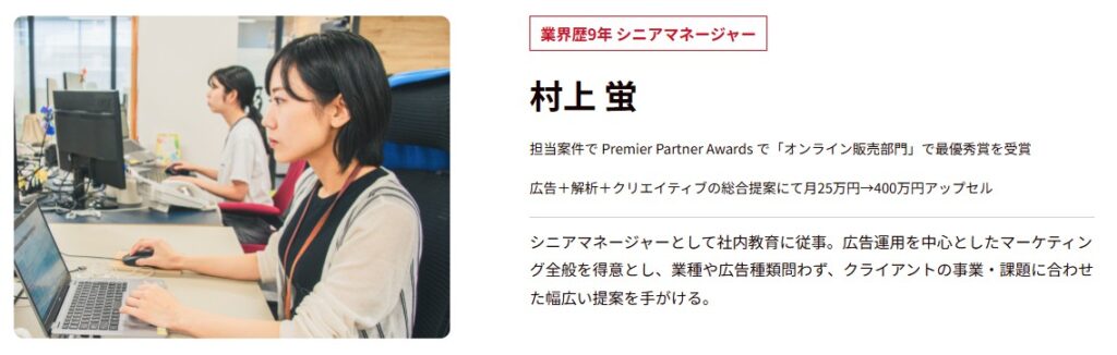 この実績は同社の広告運用スキルの高さを示すものであり、リスナビではそのノウハウを直接学ぶことができます。大手代理店の現場で通用するスキルが身につくため、副業や転職で即戦力として活躍できます。